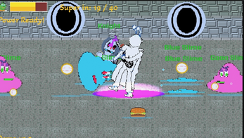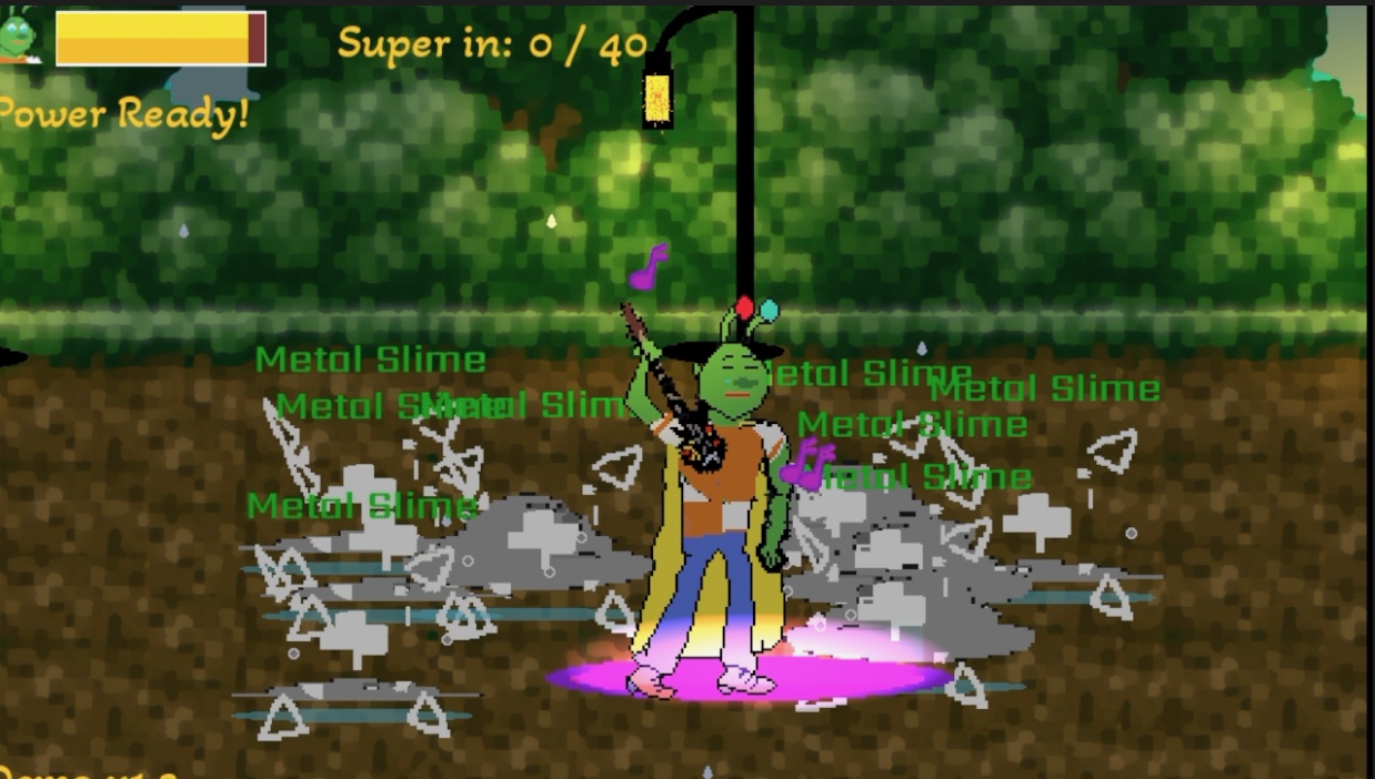 Savior Performance is a single player side scrolling beat 'em up game by Brock Troxell, creator of Vision Bulbs In The Beat, an Alt-Rock-Indie project. The game is about Maze, a fire fly that uses his guitar to beat up the Metalheads, a gang of bad guys that kidnapped Princess Tabitha.